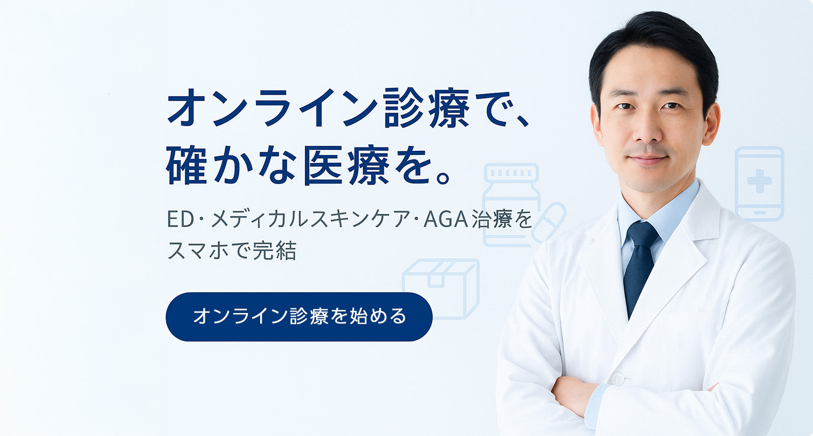 「健康と自信を取り戻す」ことを使命とし、ED・美肌ケア・AGAなど幅広い領域で、確かな医療をオンラインでお届けいたします。